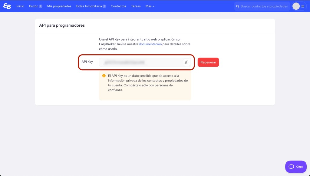 OJO: No le des click a “Regenerar” ya que perderás las integraciones que ya hayas realizado.