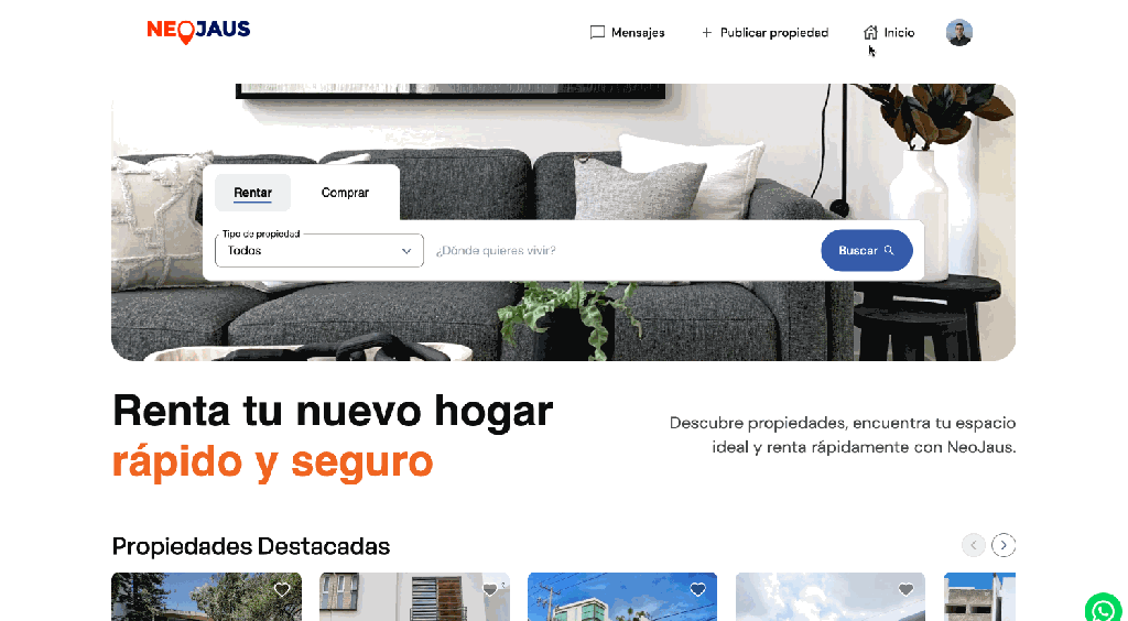¡Listo! Todo tu inventario estará en NeoJaus. Te recordamos que NeoJaus es el portal inmobiliario más completo, no solo porque ofrecemos la plataforma más accesible y eficiente, sino porque somos los únicos que integran inteligencia artificial para facilitar la búsqueda de propiedades y optimizar la interacción con clientes. Además, reunimos en un solo lugar a todos tus proveedores de servicio para que tengas todo lo que necesitas sin complicaciones. Con NeoJaus, el futuro inmobiliario ya está aquí.